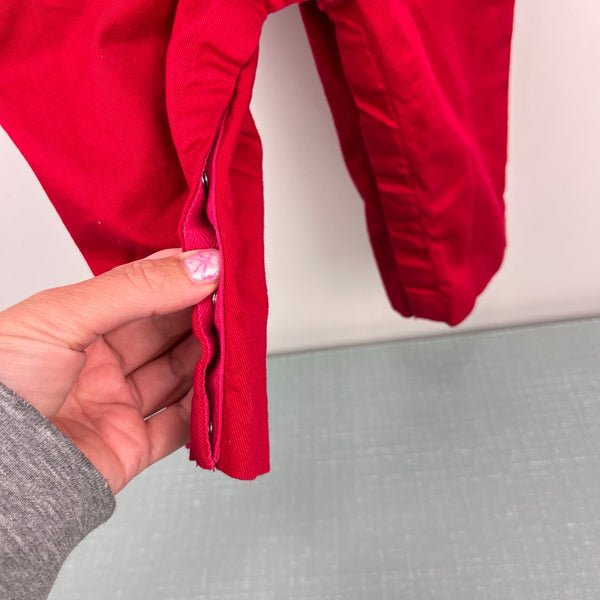 Florence Eiseman Red Longall Romper with Applique Soldier. Baby toddler boy or girl size 18 months. Dressy jon jon style overalls. Festive red with embroidered toy soldier and Christmas trees. Perfect for the holiday season! Buttons on the shoulder and snaps along the legs. Excellent condition with no flaws noted. Retail $94.
