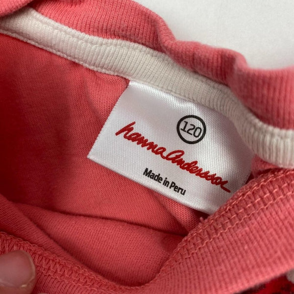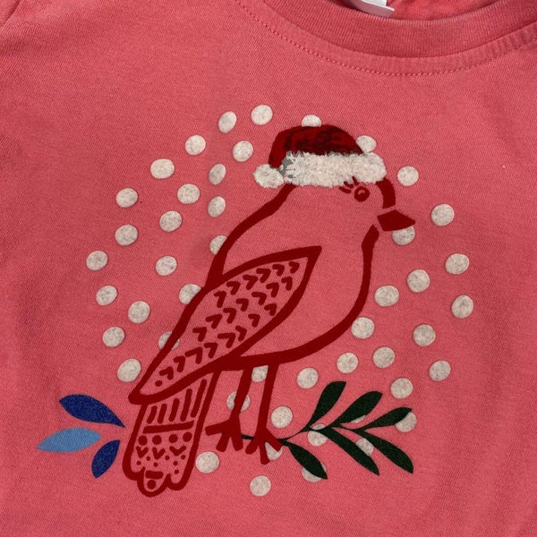 Hanna Andersson Girls Pink Bird Tee. Little girls size 120 cm ( US 6-7 years). Cute and casual long-sleeve top is perfect for every day play. Features snowy bird wearing a Santa hat. A couple super light marks on sleeve (see photo), but otherwise great condition!