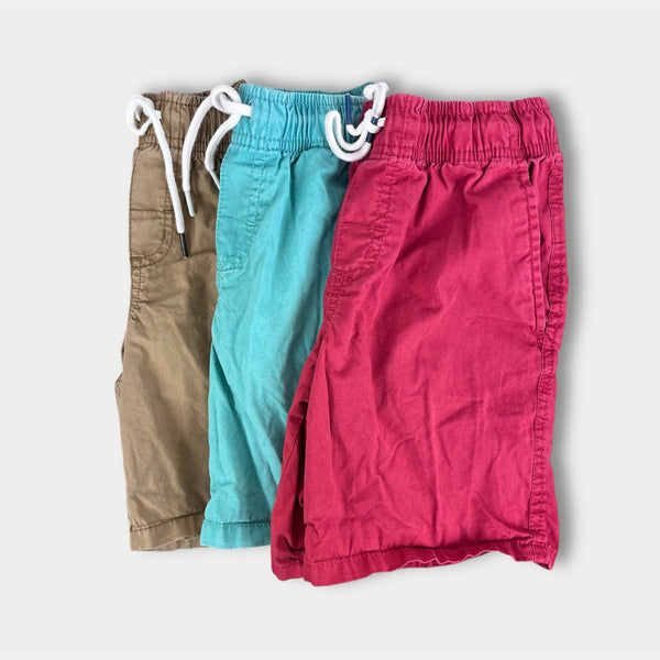 Cat & Jack Chino Shorts Bundle. Boys size small (6-7 years). Classic tan khaki, preppy red, and light green. Easy pull on style with elasticized drawstring waist. Some light marks on the green pair. Perfect for every day wear to school!