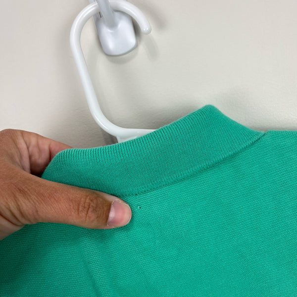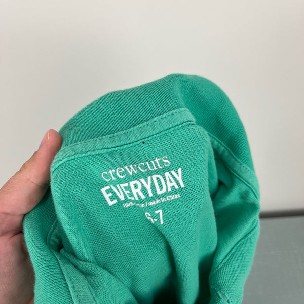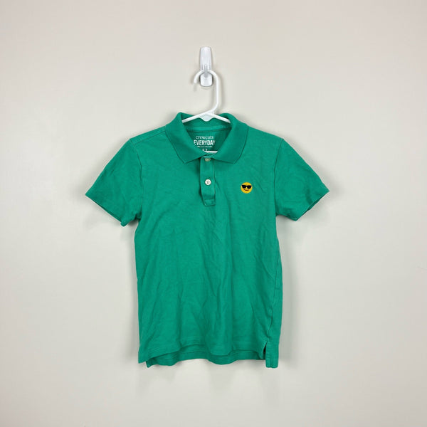 J. Crew Kids Everyday Critter Polo Shirt Green Smiley. Boys size 6-7 years. Short sleeve collared top with fun sunglasses smiling face emoji. Tiny pinhole in back (see photo), but otherwise excellent condition!