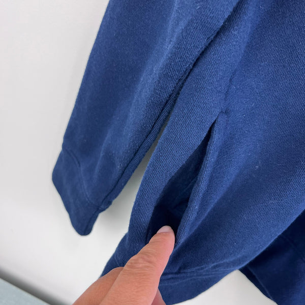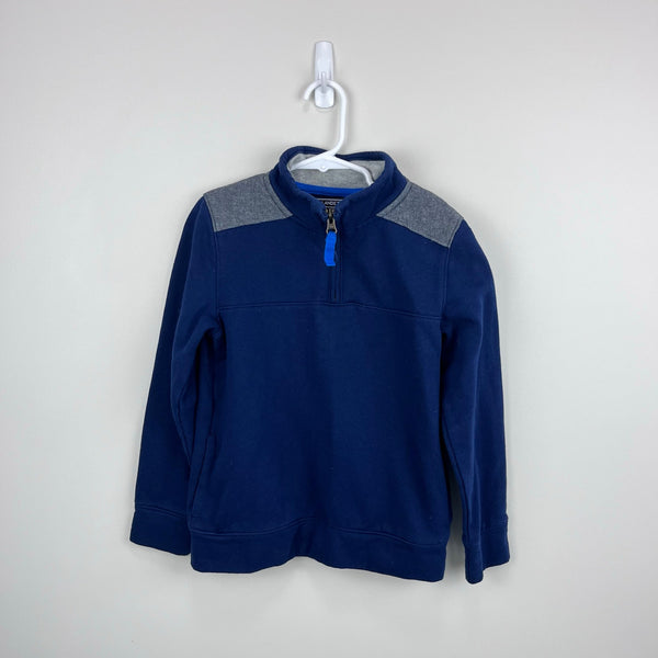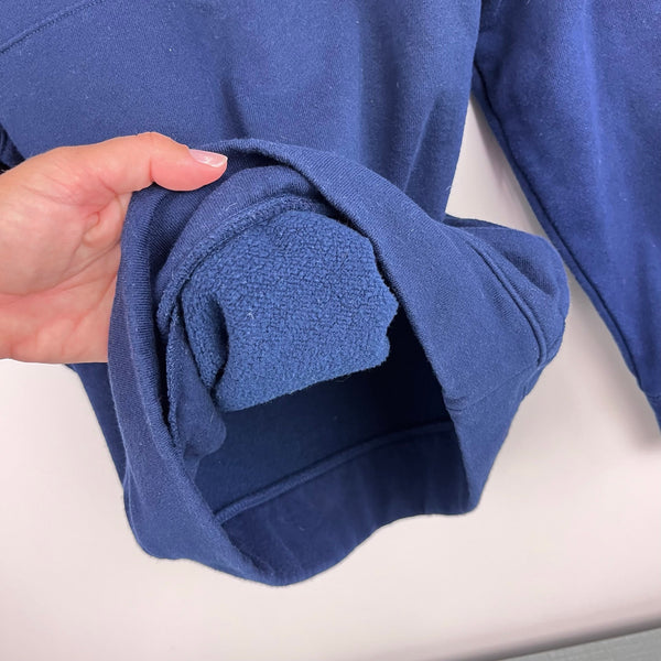 Lands End Quarter Zip Pullover Sweatshirt Navy Blue. Boys size small (8 years). Cozy pullover sweatshirt with pockets, zipper, and gray fabric at the shoulders. (Similar in style to a VV shep shirt.) Cozy ribbed fabric inside the collar, too. Excellent condition. Perfect for cool fall days!