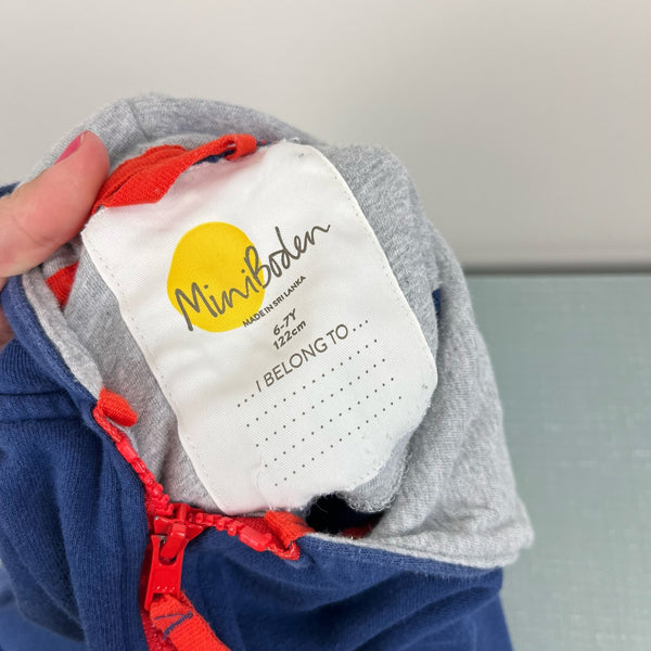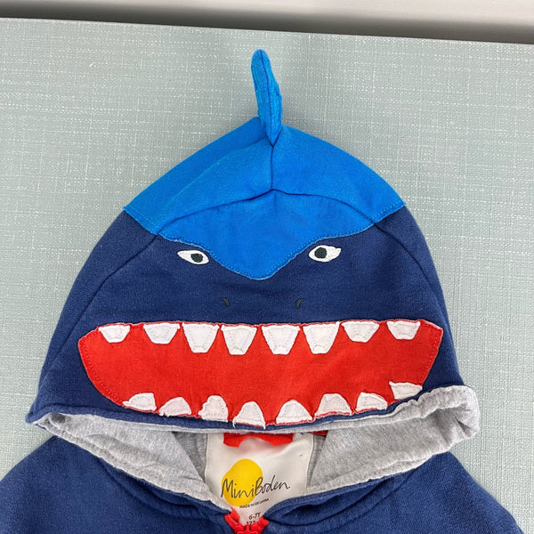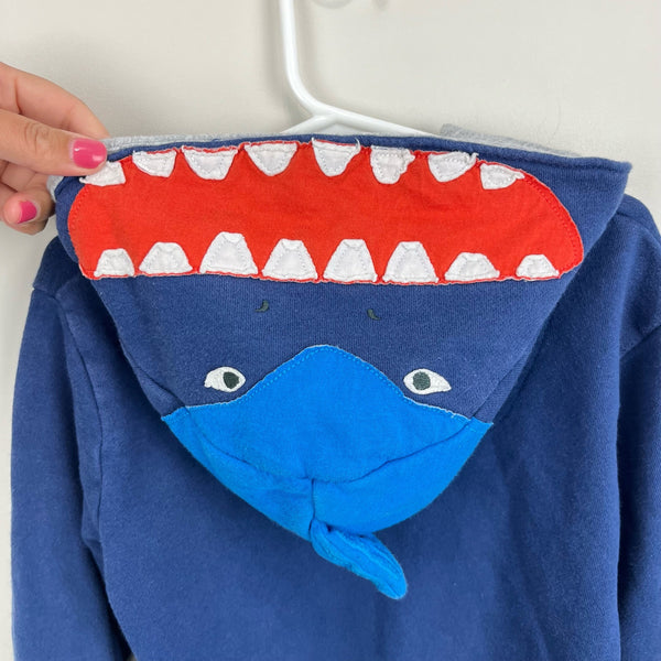 Mini Boden Navy Shark Zip Up Hoodie Sweatshirt 6-7
