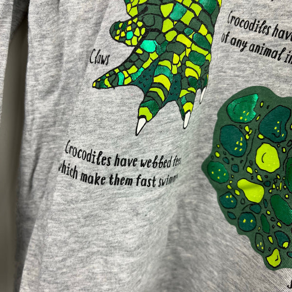 Mini Boden Printed Educational Tee Shirt Grey Marl Crocodiles. Boys size 9-10 years. Fun long sleeve gray top with crocodile facts. Excellent condition; worn just a couple times.