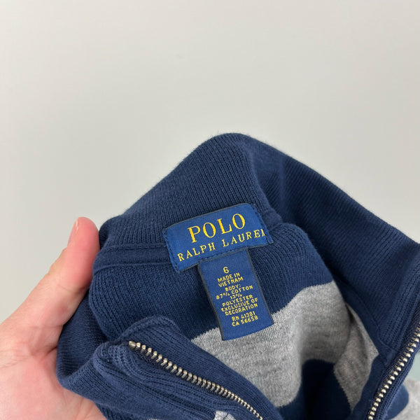 Ralph Lauren Navy Gray Quarter Zip Sweater 6