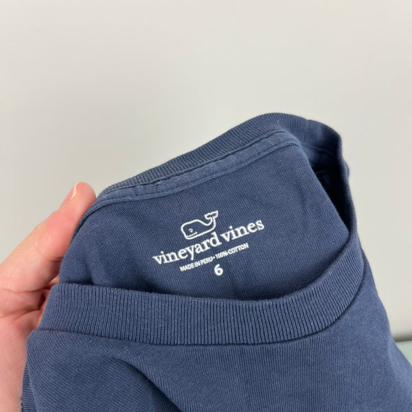 Vineyard Vines Kids Vintage Whale Pocket T-Shirt. Boys size 6. Short sleeve navy blue top with signature whale logo on pocket and in back. Great for every day play with shorts or jeans!