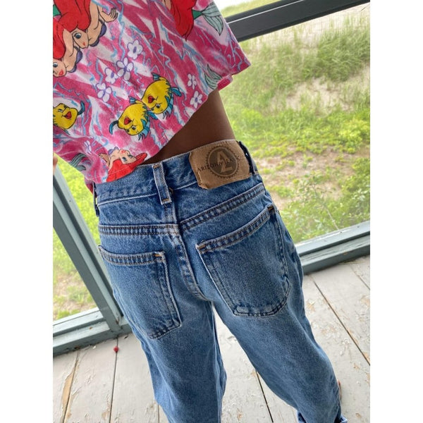 Vintage Arizona Blue Jeans. Unisex kids size 7 slim. High waisted style. So cute with a crop top! Medium wash denim. See photos for measurements.