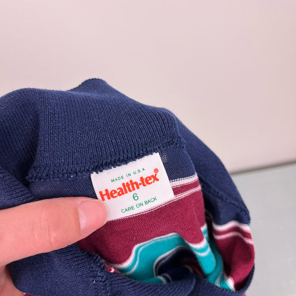 Vintage Healthtex Boys Striped Long Sleeve Polo Shirt 7 USA