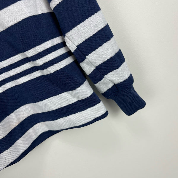 Vintage Health-tex Striped Long Sleeve Polo Shirt. Boys size 7. USA made. Collared top in mixed navy blue and white stripes. Pairs perfectly with jeans! See photos for measurements.
