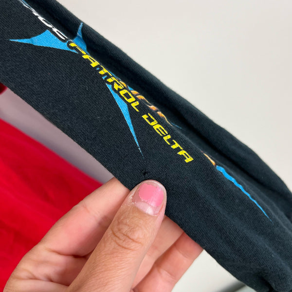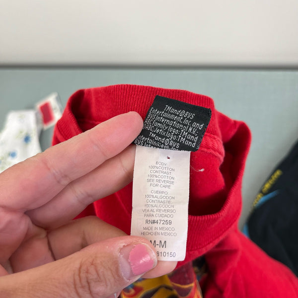 Vintage Power Rangers Long Sleeve Red T-Shirt. Boys size medium; see photos for measurements. Casual faux layered red and black top. Has a tiny in the sleeve and light marks near the hem (see last two photos).
