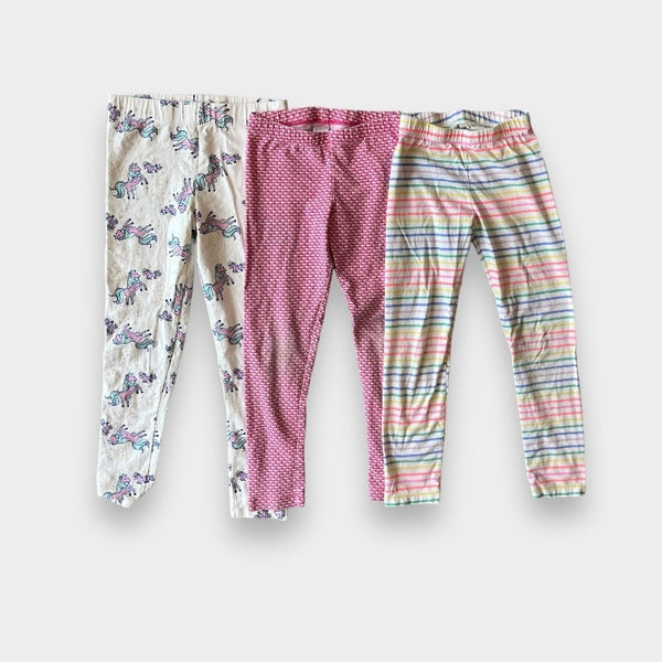 Girls 3 Piece Leggings Bundle. Rainbow stripe Cat & Jack leggings size 6-7. Light marks. Vineyard Vines pink whale leggings size small (7-8). Fading/wear at the knees and bum. Cynthia Rowley unicorn leggings with sparkly gold stars size 7-8. Excellent condition (I don't think my daughter ever wore this pair). Perfect for every day play.