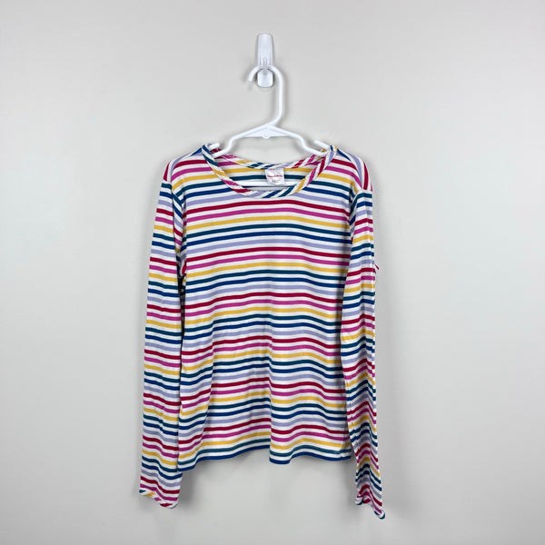 Hanna Andersson Long Sleeve Pima Cotton Tee Shirt Rainbow Stripes. Girls size 140 cm (US 10 years). Insanely soft top in color striped pattern. Excellent condition.