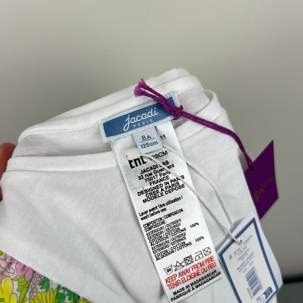 Jacadi Paris Girl T-shirt With Liberty Fabric Sleeves 8 NWT