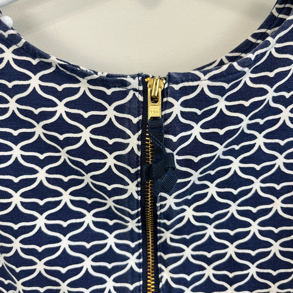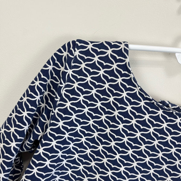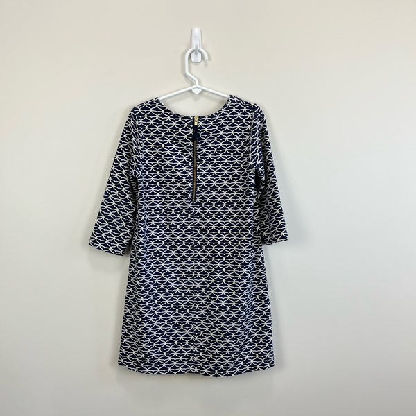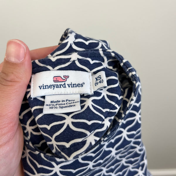 Vineyard Vines Girls Navy Whale Tale Dress. Little girl size XS (5T/6). Soft and cozy for every day wear and play: 90% pima cotton and 10% spandex. 3/4 sleeves with zipper in the back. Light navy fade from the wash but otherwise great condition with no stains, tears, etc.
