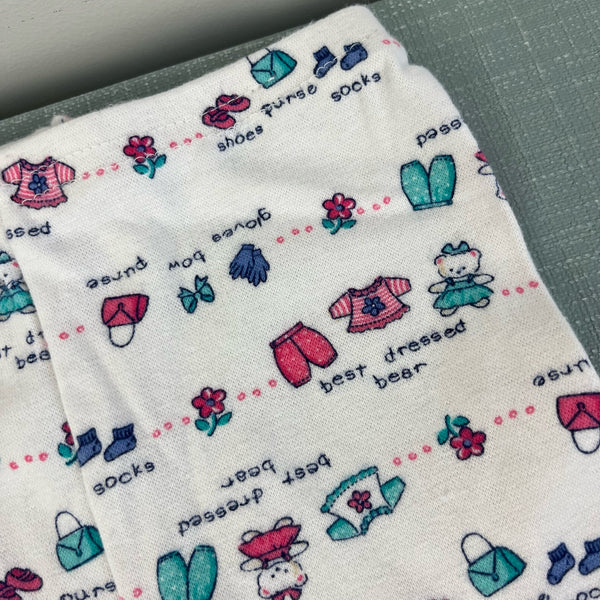 Vintage OshKosh B'gosh Best Dressed Bear Leggings. Baby toddler girl size 24 months. USA made. Cozy ivory cream colored leggings with the cutest print of teddy bears, flowers, purses, bows, and more! Matching bodysuit available separately (12 months).