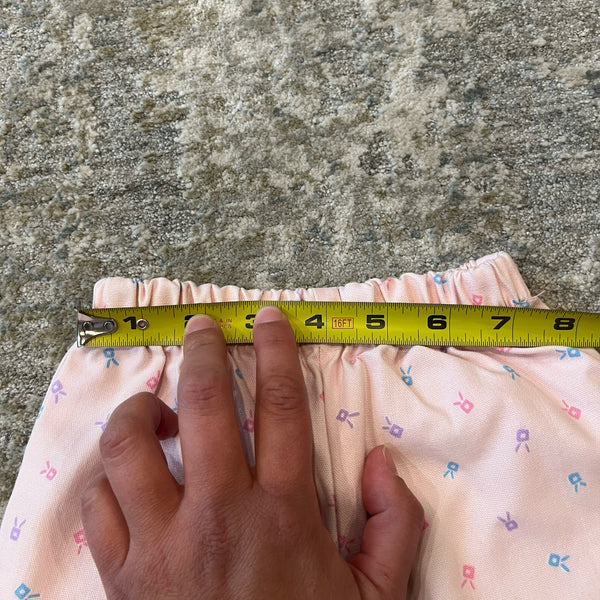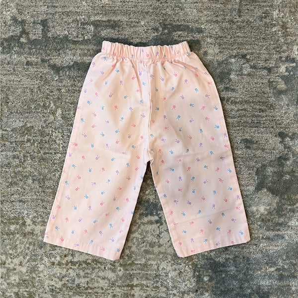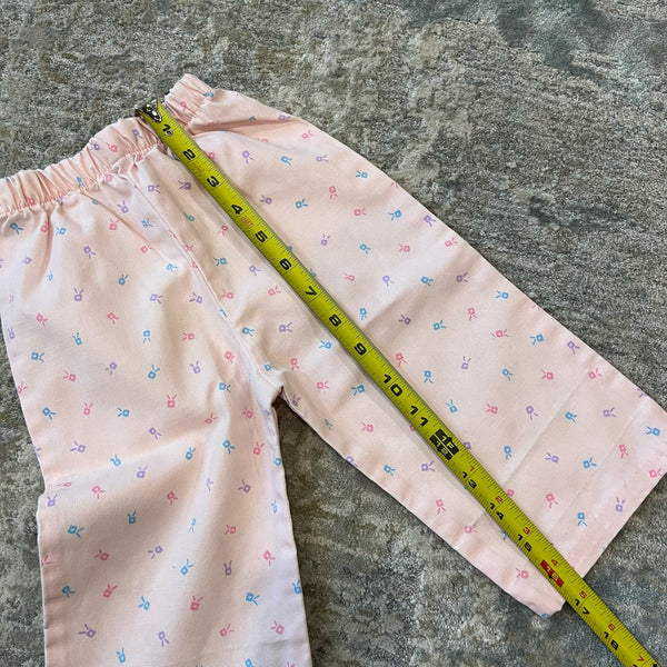 Vintage Pink Pastel Printed Pants. Baby toddler girl size 18 months. Made in the USA. No brand on the tag, but style is in line with late 80s OshKosh, Lee, and Healthtex. Light pink pull on pants with elastic waist and geometric pink, blue, and purple pattern. Has crease marks at the cuffs (see photo), but otherwise great condition with no wear at all!