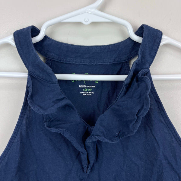 Lilly Pulitzer Girls Little Shay Top True Navy. Girls size large (8-10 years). Sleeveless navy blue tank top with ruffled halter style neckline. Pairs perfectly with printed shorts! Great condition; no stains, tears, etc.
