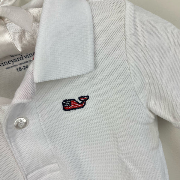 Vineyard Vines White Flag Whale Polo Onesie 18-24 Months