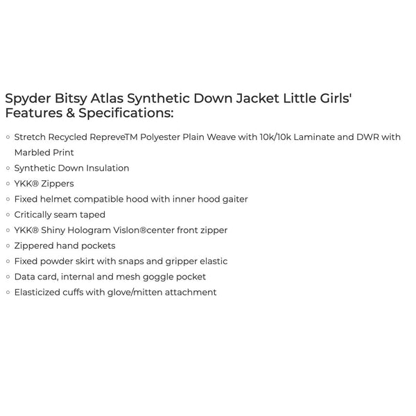 Spyder Girls Bitsy Atlas Synthetic Down Ski Jacket Marbled 2T NWT