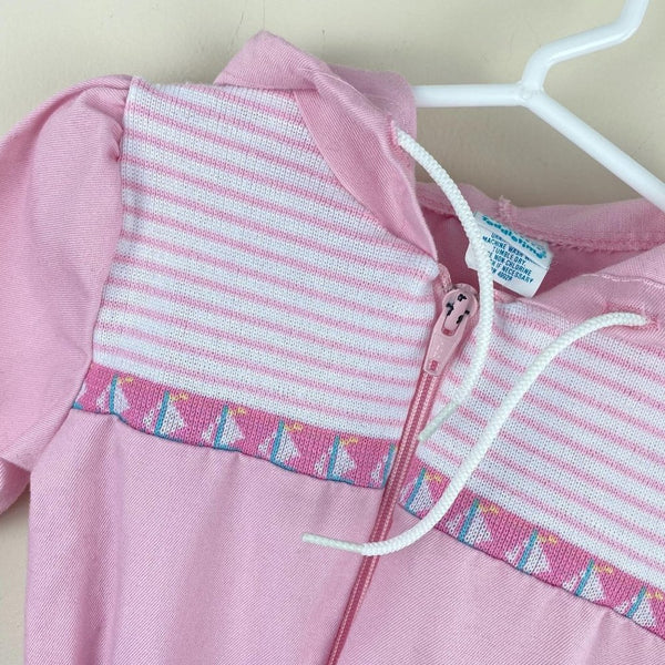 Vintage Toddletime Pink Spring Jacket. Toddler girl size 3T. Light pink hooded coat is an adorable alternative to a sweatshirt for chilly days. Pink with stripes and embroidered sailboats across the chest. Some wear due to age; elastic is still good, no stains or tear. See photos for measurements.
