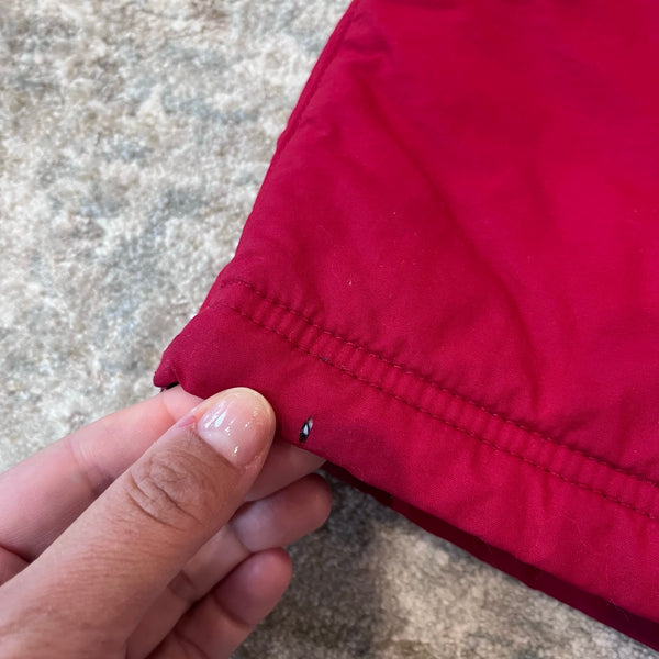 L.L. Bean Kids' Insulated Snow Pants Red. Boy or girl size 10. Features elasticized waist, reinforced knees and seat, hand warmer pockets, snow gaiters, and zip boot vents at the hem. Tiny tear at hem (see photo), but otherwise excellent condition.