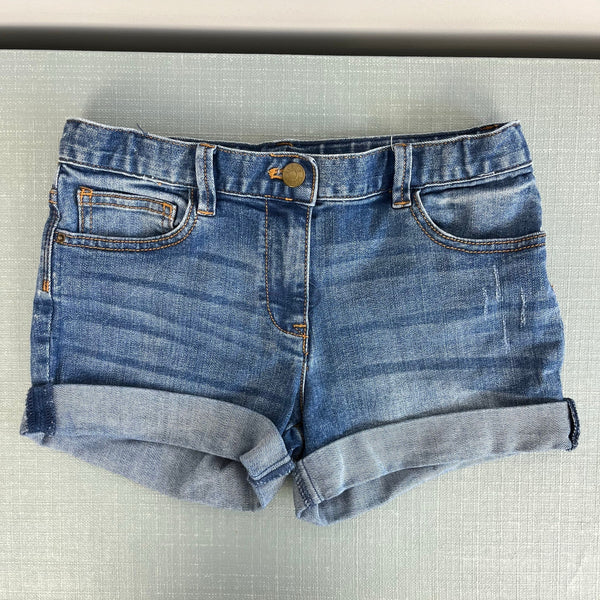 J. Crew Kids Cuffed Medium Wash Denim Cowgirl Shorts. Girls size 10. Classic distressed blue jean shorts with adjustable tabs in the waist for a perfect fit. Legs can be unrolled for a longer fit. Great condition with no flaws noted. Original retail 49.50.