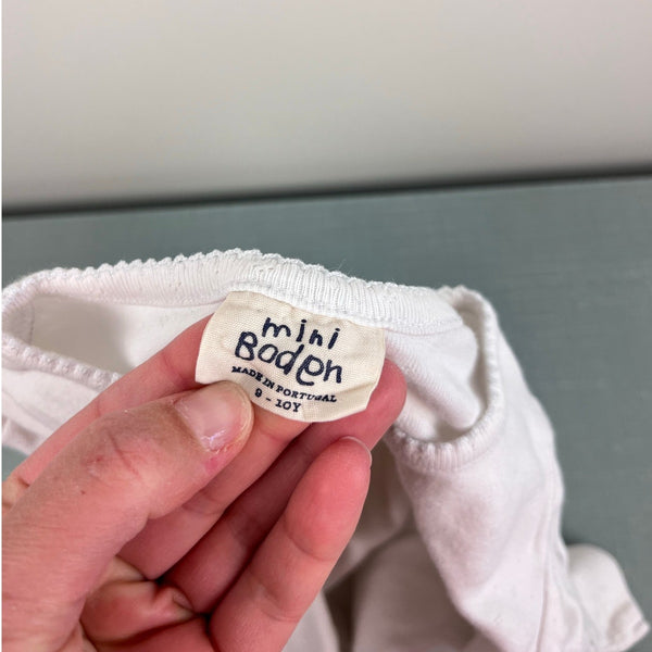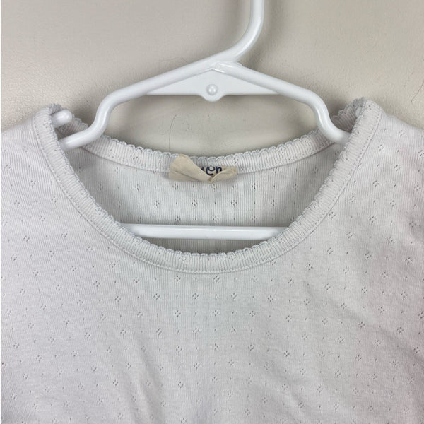 Mini Boden Supersoft Pointelle Tee Shirt. Girls size 9-10 years. Short sleeve white white. A wardrobe staple in our house! Light mark (see last photo; untreated).