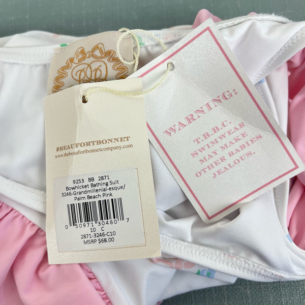 TBBC Bowhicket Bathing Suit Grandmillennial-esque with Palm Beach Pink 10 NWT