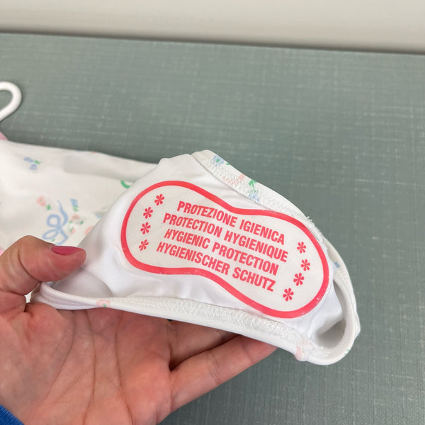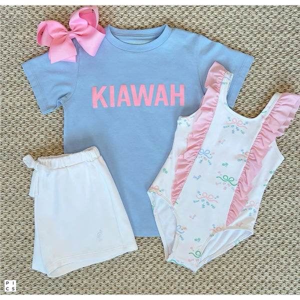 The Beaufort Bonnet Company Bowhicket Bathing Suit Grandmillennial-esque with Palm Beach Pink. Girls size 10. Brand new with tags (NWT). The sweetest one piece white bathing suit with ribbon print and pink ruffles down the sides. Palm Beach Pink, Beale Street Blue, and Grace Bay Green. 88% Nylon, 12% Spandex. Perfect for a beach vacation!