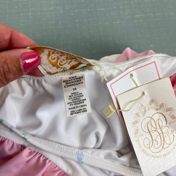 TBBC Bowhicket Bathing Suit Grandmillennial-esque with Palm Beach Pink 10 NWT