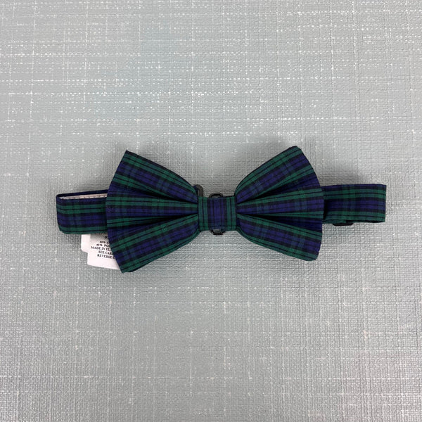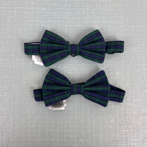 The Beaufort Bonnet Company Baylor Bowtie Fall Party Plaid. Preppy navy blue and green plaid bow tie. Fits ages 2 to 12. Pre-tied bow. Black adjuster slider and g-hook hardware to latch. Worn once for a couple hours; perfect condition. Two available (this listing is for one). Matching sister dress available separately. Perfect for Thanksgiving or Christmas!