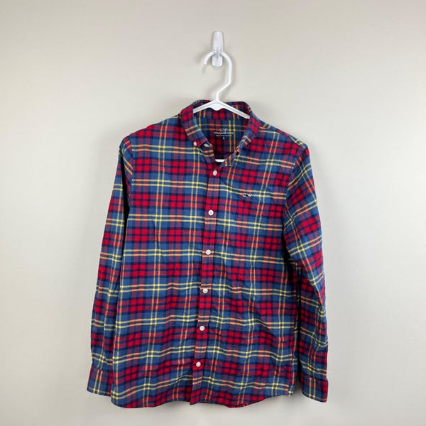 Vineyard Vines Plaid Flannel Whale Shirt. Older boys size large (16). Classic, preppy button down dress shirt in cozy flannel material that is perfect for chilly days. Mix of red, blue, and yellow. Excellent condition.