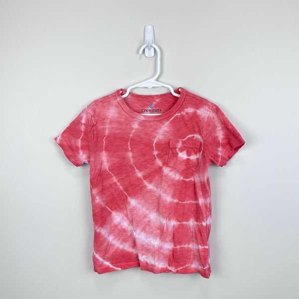 J. Crew Kids Pocket Tee Shirt in Tie-Dye. Boys size small (6-7 years). Casual short sleeve top in fun "warm red tie dye" swirl pattern. Excellent condition with no flaws noted.