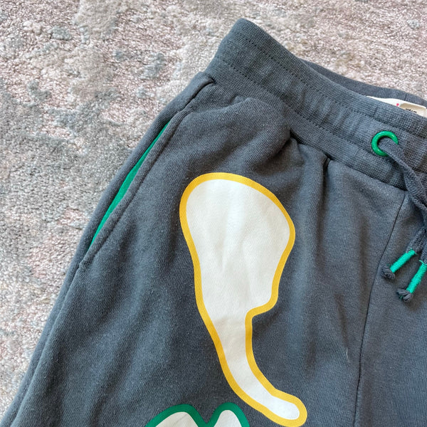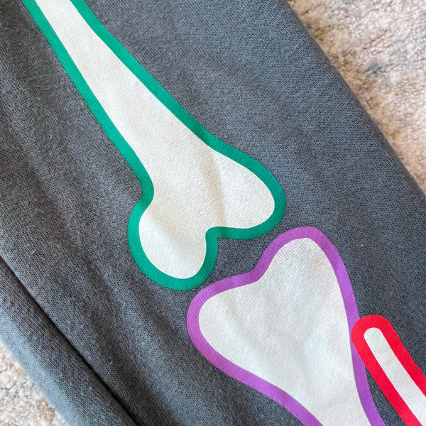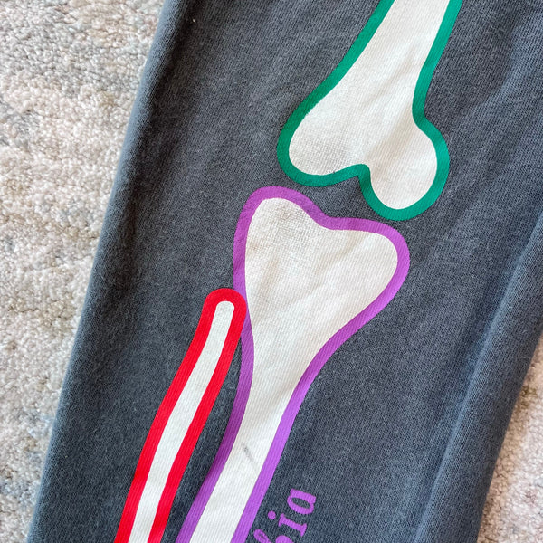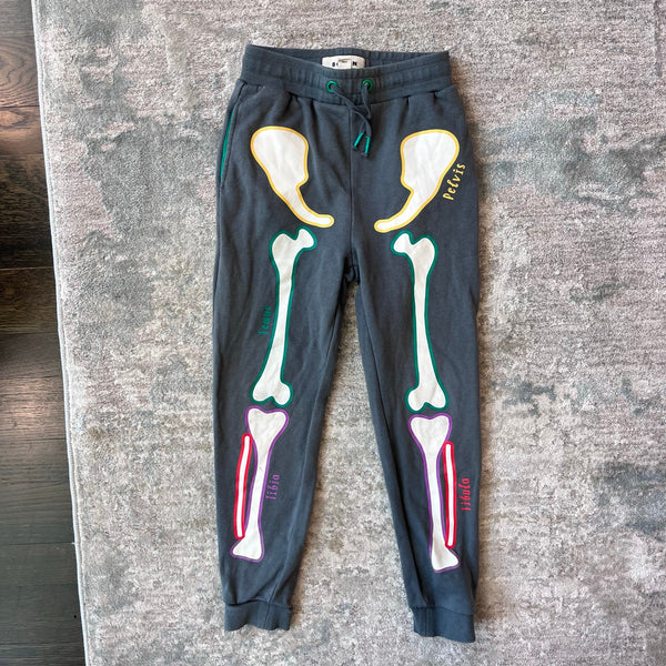 Mini Boden Smoke Grey Halloween Skeleton Joggers. Boy or girl size 6 years. Fun sweatpants with elasticized, drawstring waist. Gray with colorful, glow-in-the-dark bone print. Light marks on the bones (see last two photos; untreated). The cutest for fall! (Matching sweatshirt listed separately.) So bummed Boden didn't make a new version this year!