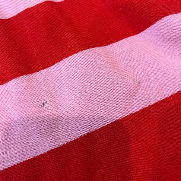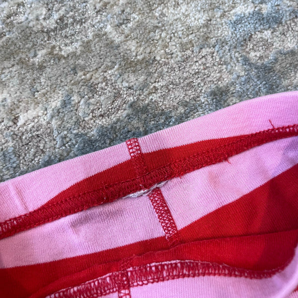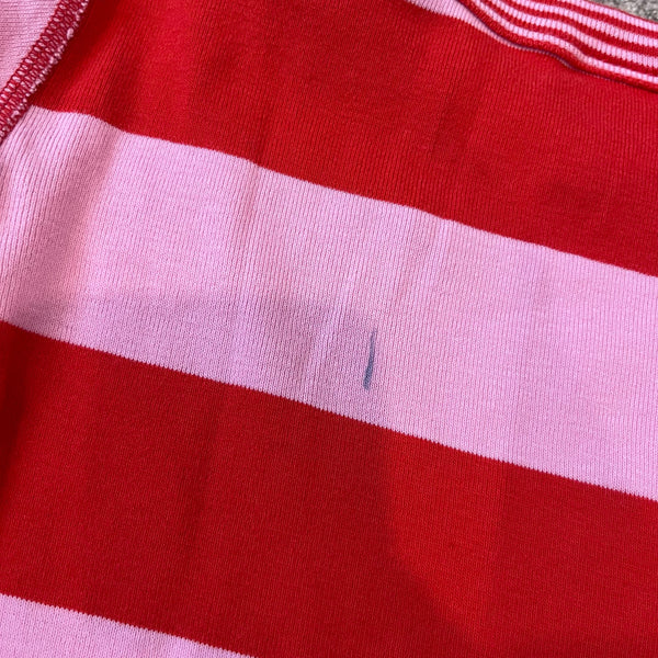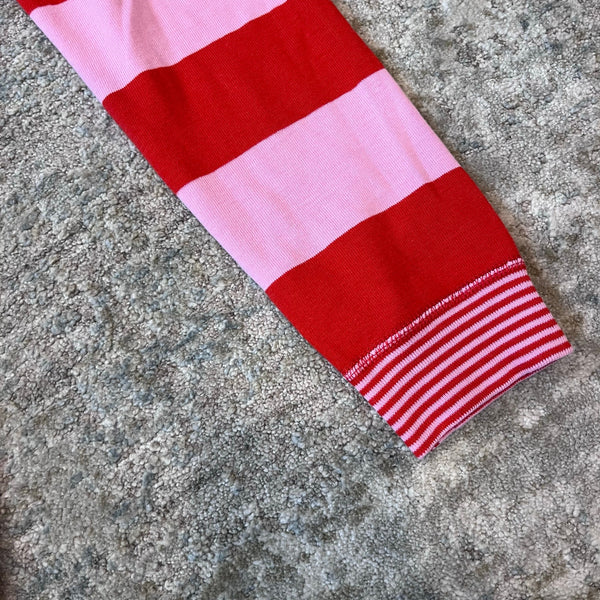 Hanna Andersson Pink Stripe Long John PJs. Girls size 120 cm (6-7 years). Two piece pajama set. Long sleeve top and pants bottom. Bold pink and red stripes. A few small marks (see photos; untreated), but otherwise great condition.