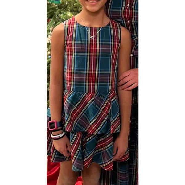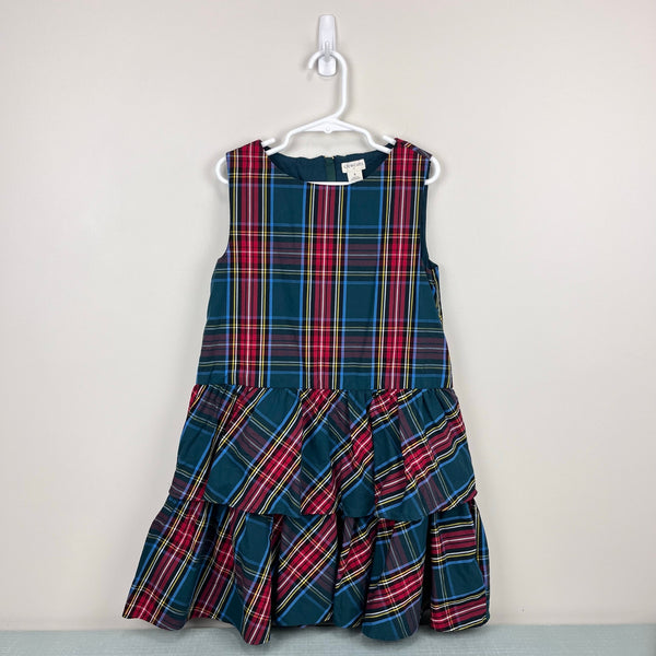 J. Crew Kids Tartan Plaid Tiered Dress Warm Spruce. Girls size 8. Festive, sleeveless plaid dress with tiered skirt and zipper in the back. Worn once for a few hours; excellent condition.