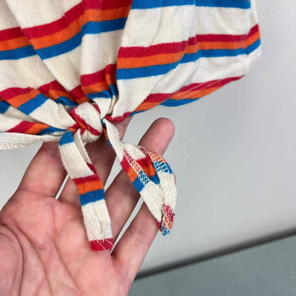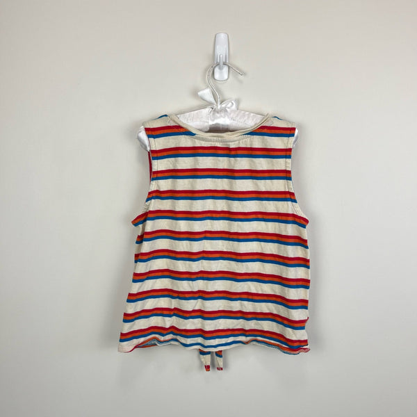 Melrose & Market Retro Striped Tank Top. Girls size medium (8-10 years). Casual, vintage inspired sleeveless top. Tank with red, orange, and blue stripes. Tie waist.
