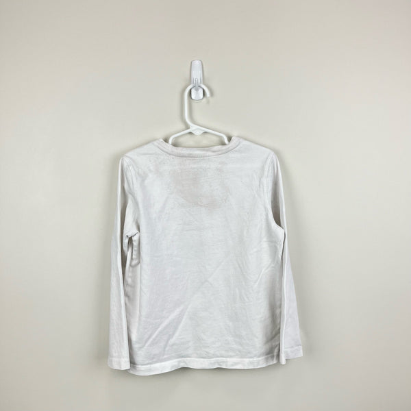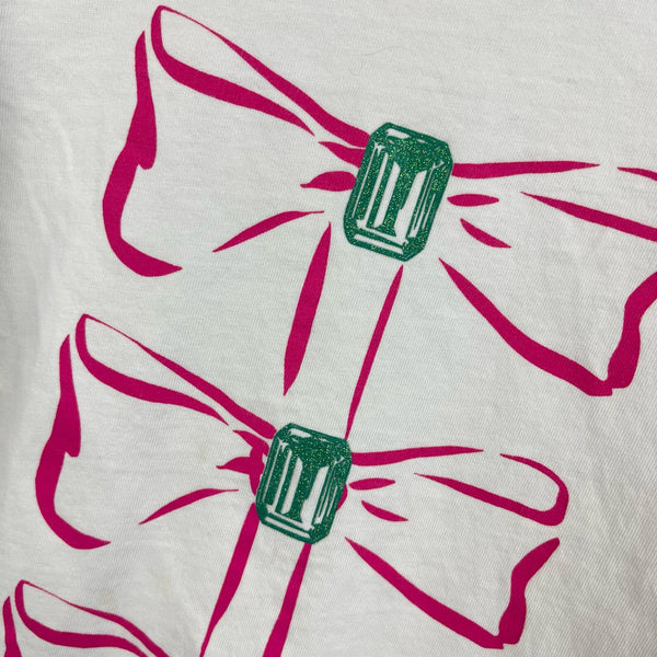 Vineyard Vines Long Sleeve Bow T-Shirt. Girls size small (7-8 years). Casual white top with pink and green ribbon bow and jewel design. Has marks (see photos; untreated).