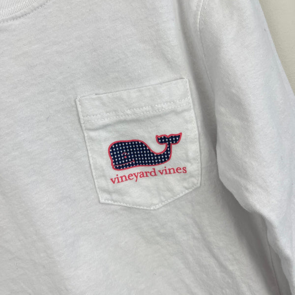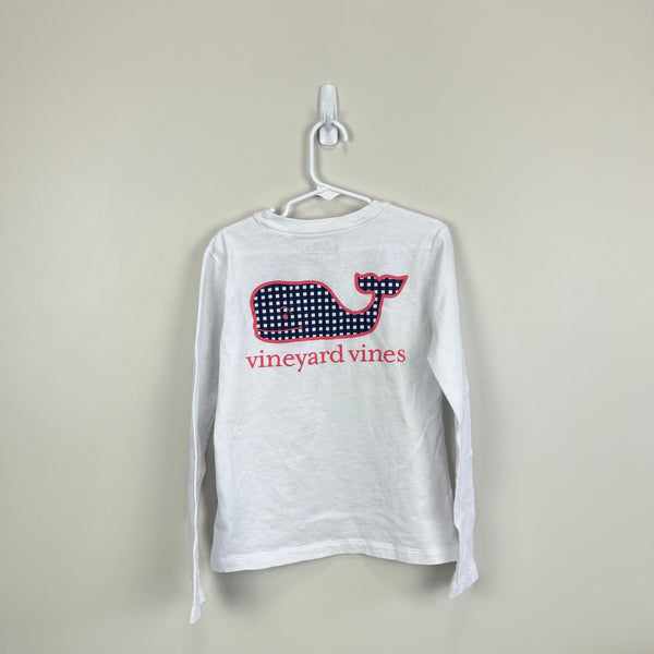 Vineyard Vines Long Sleeve White Whale T-Shirt. Girls size small. Blue gingham whale outlined in pink on pocket and in the back. Great condition!