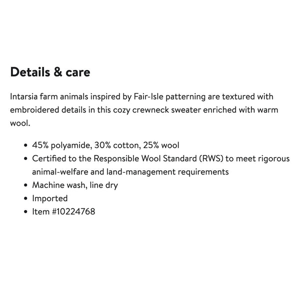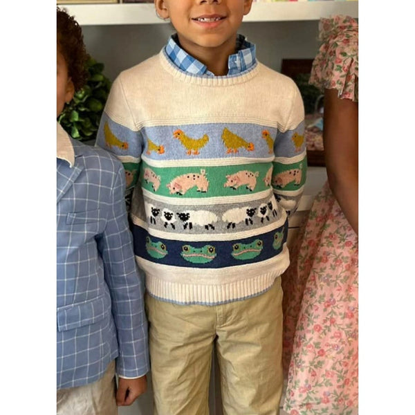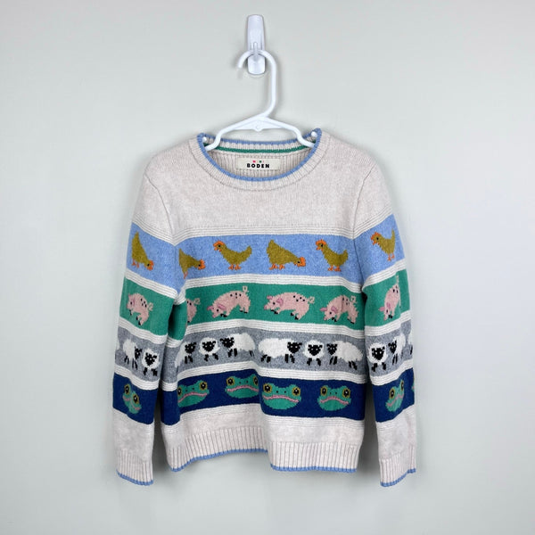 Mini Boden All Over Fair Isle Sweater Easter Farm Animals 7-8