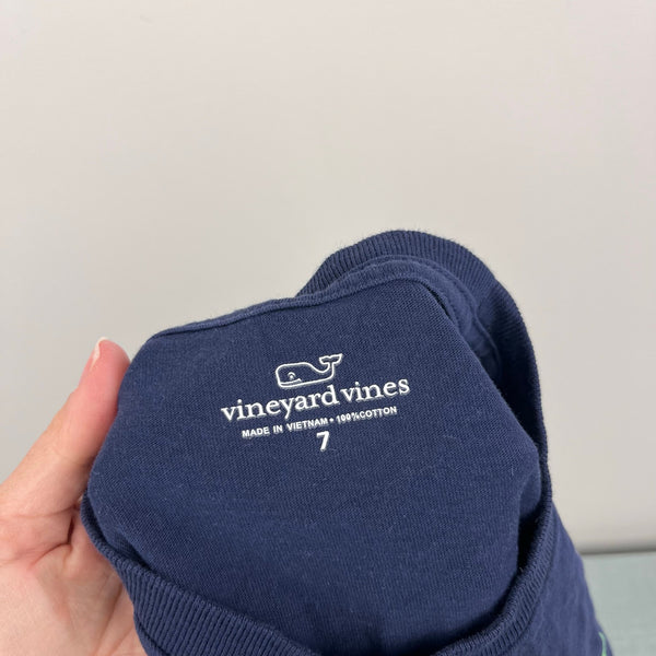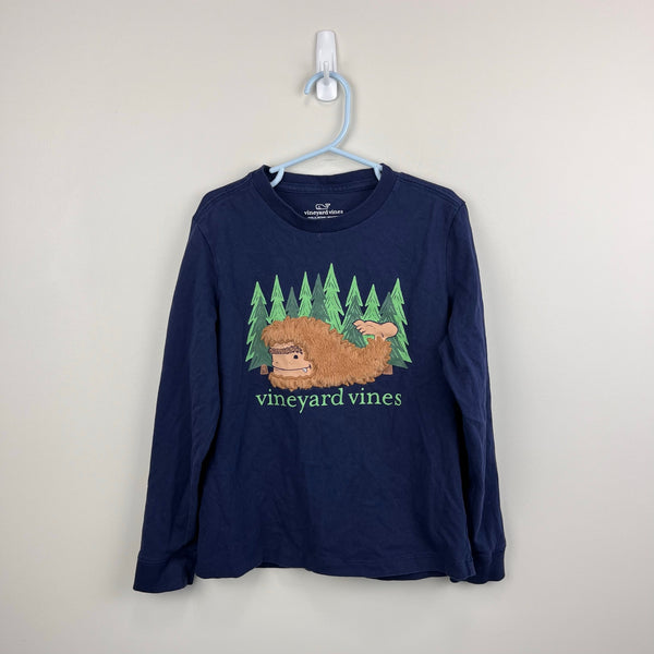 Vineyard Vines Boys' Fuzzy Bigfoot Whale Long-Sleeve Pocket Tee Shirt Nautical Navy. Boys size 7 years. Long sleeve top featuring signature preppy whale as big foot! Perfect condition.