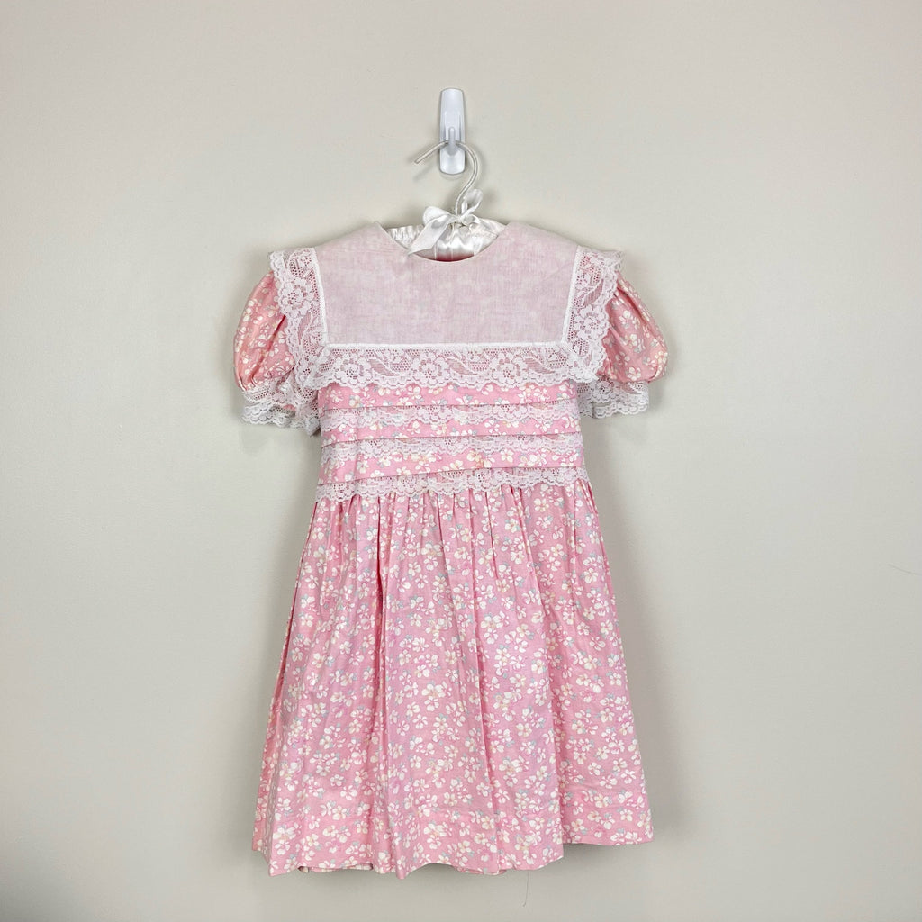 Vintage Polly Flinders Pink Floral Lace Dress 6