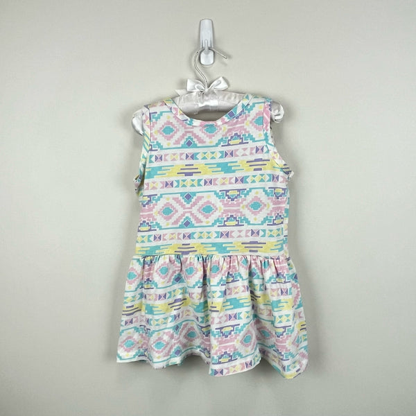 Vintage Names Pastel Aztec Sleeveless Dress. Tag faded, so please check measurements to ensure fit. (Looks around a 4T to me; just depends on the length you like!) Casual sleeveless with fun geometric pattern. Perfect for summer!