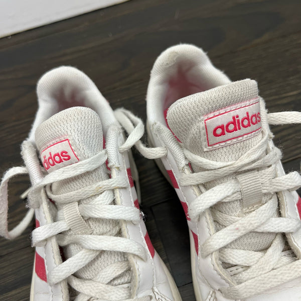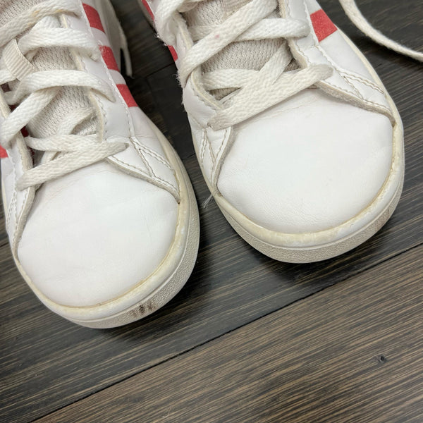 Adidas Girls Grand Court Sneakers Pink White. Girls shoe size 13. Classic style is perfect for every day wear to school! These have visible wear (see photos), but are freshly washed with plenty of life left! (My daughter would still be wearing if they fit!)