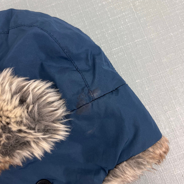 Appaman Benji Faux Fur Trapper Hat Navy Blue. Boys size large (5-7 years). This winter hat is the cutest, plus so cozy and warm! Features plush faux fur lining and adjustable chin strap with clip. Has a couple marks on the blue (see photos; untreated). Retail $45.