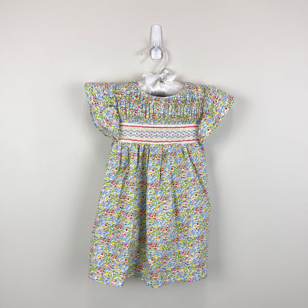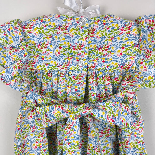 Bella Bliss Smocked Floral Dress. Baby toddler girl size 18 months. Gorgeous, timeless style! Features short, flutter sleeves, pleats and smocking across the chest with embroidery. Buttons and a sash to tie a bow in the back. Colorful paisley print. Excellent condition with no flaws noted.
