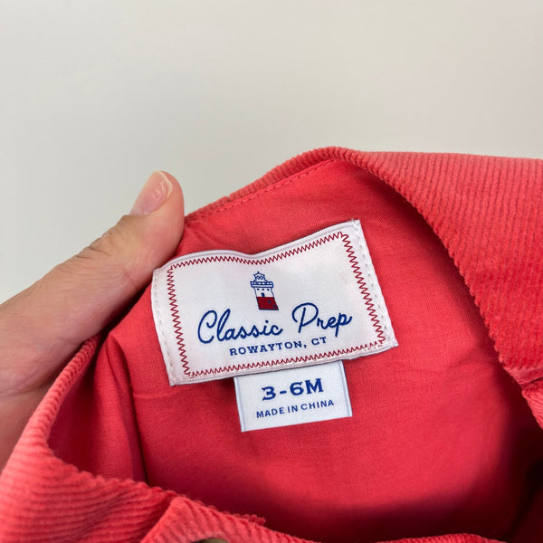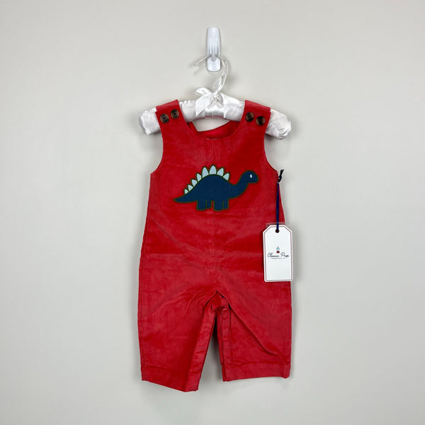 CPC Classic Prep Childrenswear Tucker Longall Dinosaur Patch Pocket Baked Apple Red. Baby boy size 3-6 months. Brand new with tag (NWT). Cozy corduroy overalls with fun navy dino applique pocket on the chest. Buttons on the shoulders and snaps along the legs. Original retail $79.