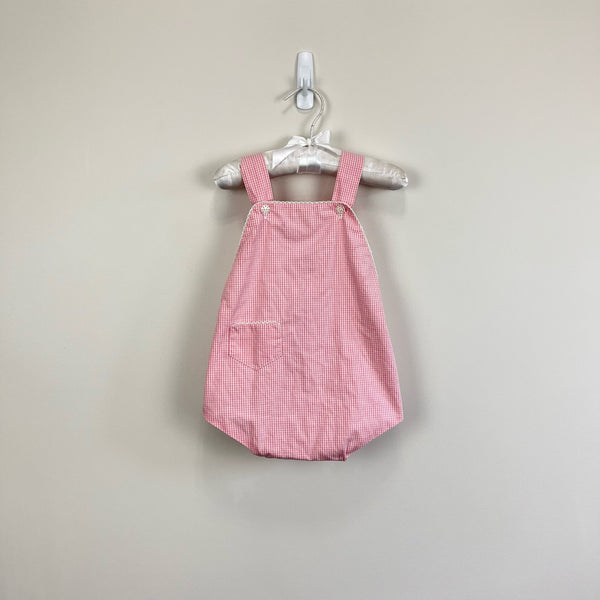 H.M. Woggle Bug Pink Bow Sun Suit Romper. Baby girl size 12 months. USA made. Gorgeous, timeless one piece outfit for summer. Pink and white plaid with white trim and adjustable straps that tie in a bow in the back. (Sizing is definitely flexible!)