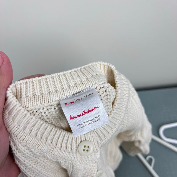 Hanna Andersson Organic Cotton Cardigan Sweater Ecru. Baby boy or girl size 70 cm (US 6-12 months). Cozy button front knit sweater. Cream. Excellent condition.