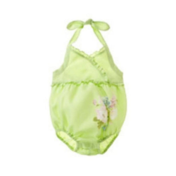Janie & Jack Soft Green Linen Bubble Romper. Size 0-6 months. Dressy sunsuit features adjustable halter tie next and ruffles on the chest. Pretty floral design on belly. Pictures don't do this outfit justice. It's so adorable and in excellent condition!