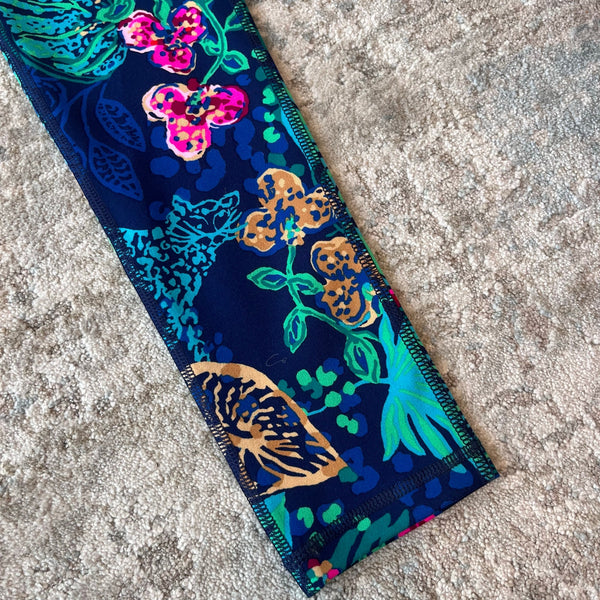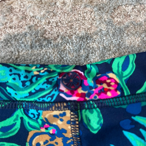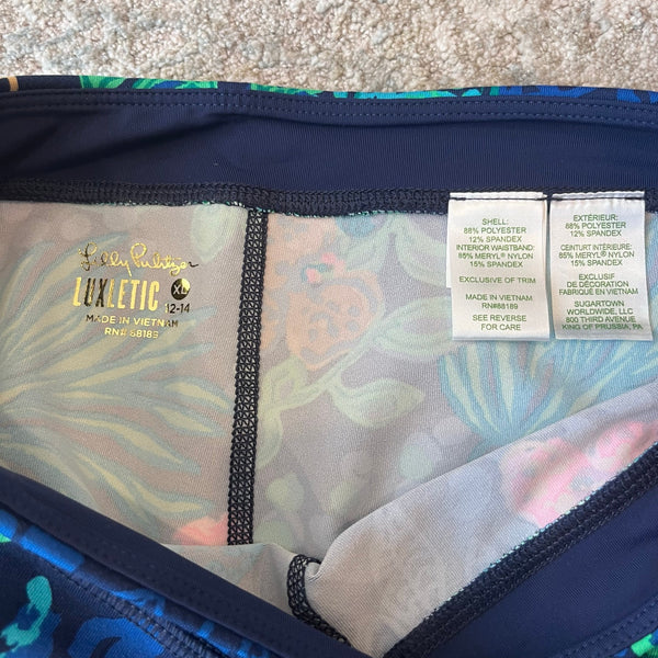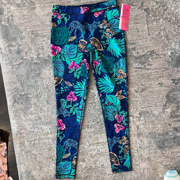 Lilly Pulitzer Luxletic Girls Mini Weekender Legging Low Tide Navy Life of the Party. Girls size extra large (12-14 years). Brand new with tags (NWT). Super soft and durable athletic leggings with UPF 50+sun protection. Bold navy, pink, blue, green, and gold print with flowers, leaves, and jungle cats. Retail $68.